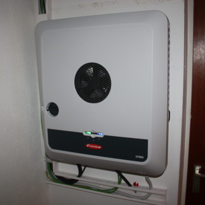 Für die zuverlässige und effiziente Umwandlung des erzeugten Solarstroms sorgt ein Fronius Symo Gen24 10.0 Plus Wechselrichter mit einer AC-Nennleistung von 10,0 kW. Ergänzt wird das System durch einen Fronius Smart Meter, der eine präzise Erfassung und Überwachung sämtlicher Energieflüsse im Haushalt ermöglicht.