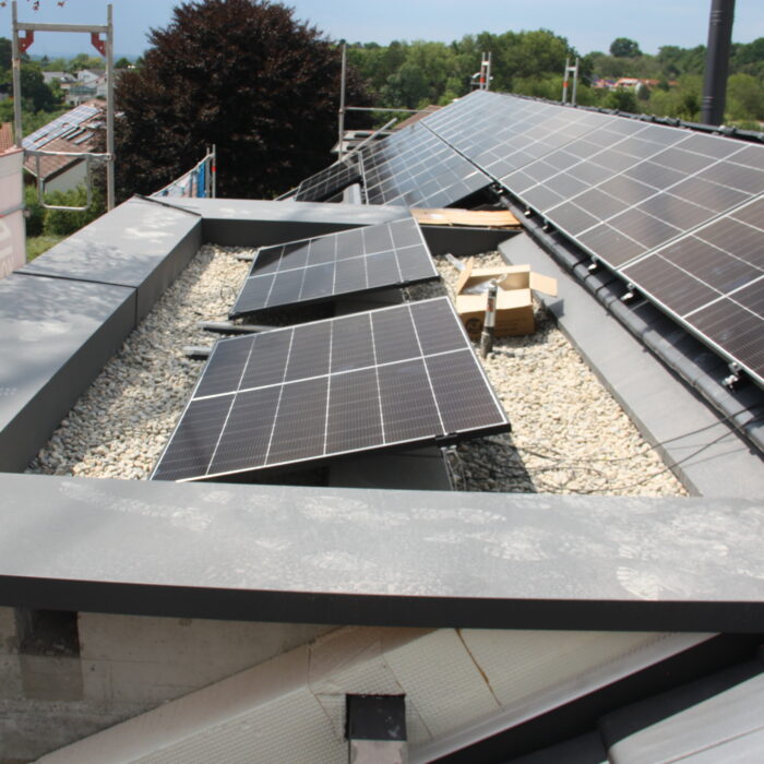 Die Photovoltaikanlage am Neubau in Kirchheim unter Teck überzeugt durch eine intelligente, wirtschaftlich optimierte Systemkonfiguration. Insgesamt wurden 34 leistungsstarke JA Solar Doppelglas-Module mit jeweils 455 Wp installiert, was eine Gesamtleistung von 15,47 kWp ergibt. Die Module zeichnen sich durch ihre bifaziale Technologie und hohe Widerstandsfähigkeit aus und bieten 25 Jahre Produkt- sowie 30 Jahre Leistungsgarantie.